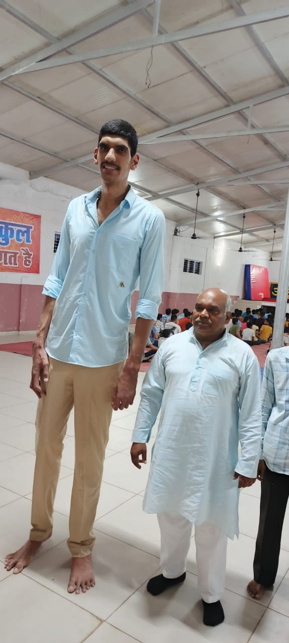 Inspiring Journeys in Pictures Videos Green Moments Press Coverage Meetings WELCOME TO HERE योग द्वार चश्मे से मुक्ति शिविर Indias Tallest man visited Anglo vedic gurukul Awadh Pratap Ojha at Anglo vedic gurukul